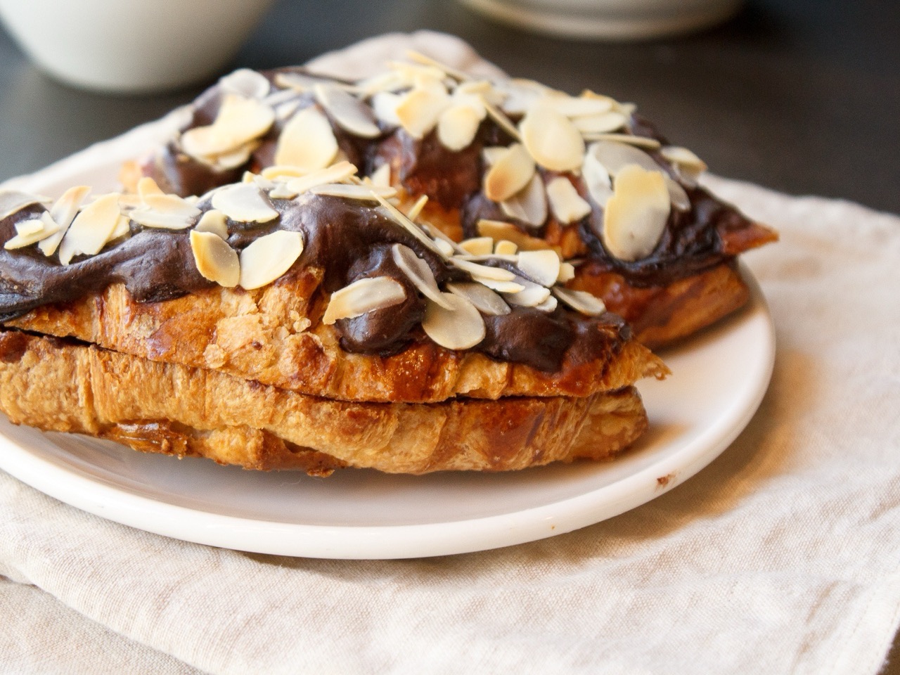 Традиционный французский круассан на сливочном масле с начинкой из шоколадной пасты с миндалем. Вес изделия 110 гр.