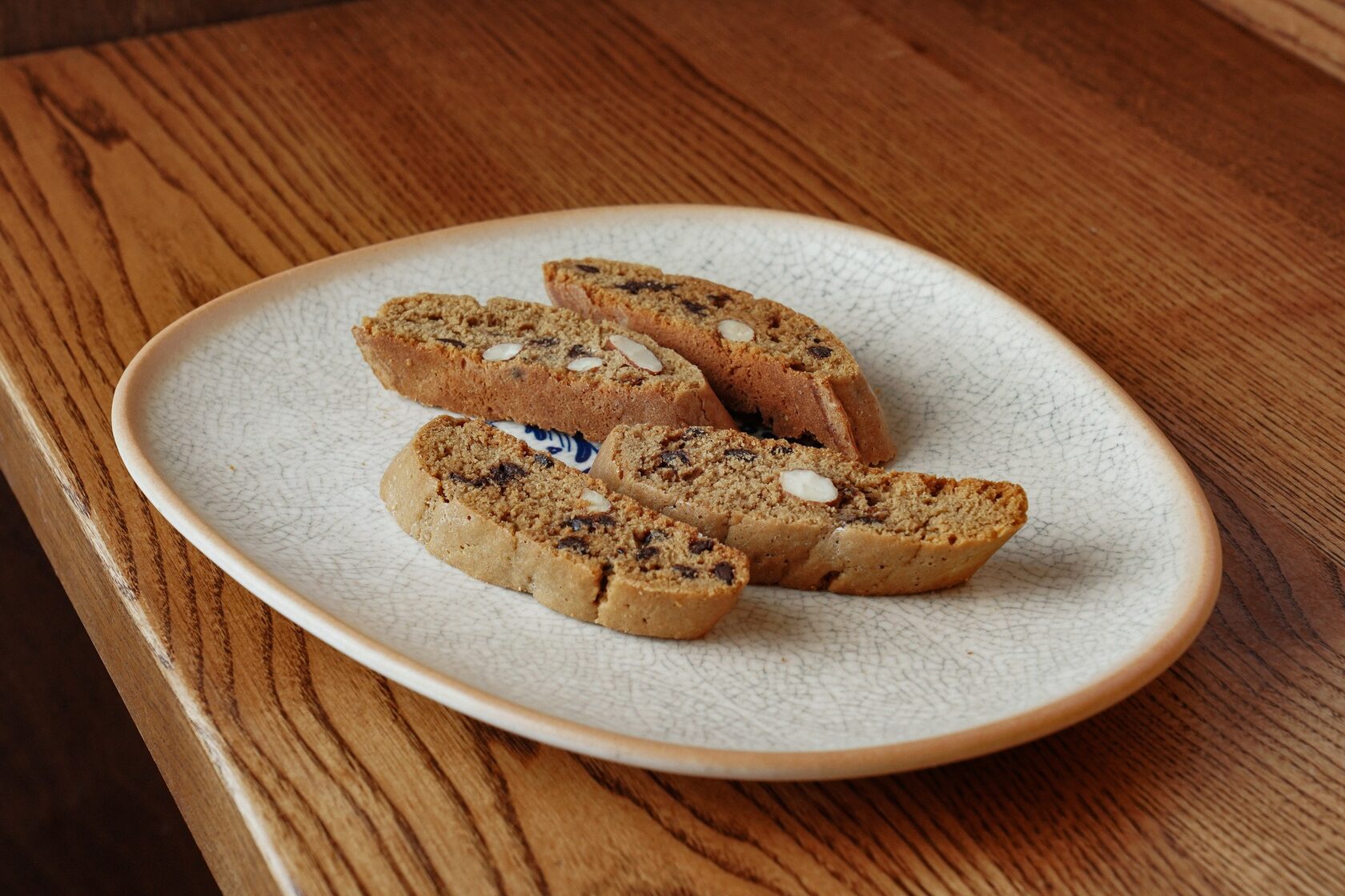 Традиционное тосканское сдобное печенье - хрустящее, с легкой кофейной ноткой, с миндалем и кусочками шоколада.